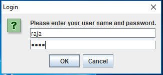 "Login", JOptionPane.OK_CANCEL_OPTION, JOptionPane.QUESTION_MESSAGE, null, null, null);
