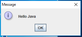 JOptionPane.showMessageDialog(frame, "Hello Java");