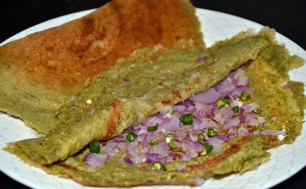 这就像多萨的翻版,区别在于 pesarattu 是用绿豆(也称为 mung dal)制成的。这是安得拉邦居民家庭中非常常见的早餐食品。