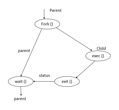 wait() − 父进程使用 wait 函数暂停执行,直到子进程终止。使用 wait,父进程可以获得已终止子进程的退出状态。