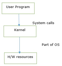 当用户想要向操作系统发出指令时,它将通过系统调用来实现。或者,用户程序可以通过系统调用访问操作系统的内核部分。