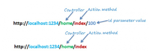 在上面的 URL 中,将匹配相应的控制器和操作。如果我们没有在 URL 中发送控制器和操作方法,并且基于默认路由,将调用相应的控制器操作方法。