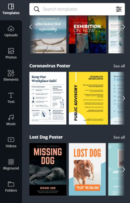 模板——Canva拥有超过50,000个模板库,您可以根据自己的需求选择、编辑和自定义这些模板。此外,定期会向现有库中添加新的模板。
