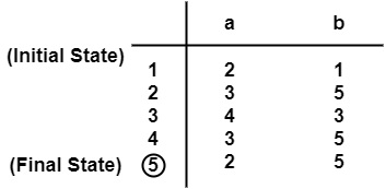 确定性意味着对于每个输入,自动机只有一个状态可以从其当前状态转换。在确定性有限自动机中,磁头只能沿一个方向移动以扫描输入磁带符号。但在双向有限自动机的情况下,在扫描输入符号时,磁带的磁头可以从其当前位置向右或向左移动。