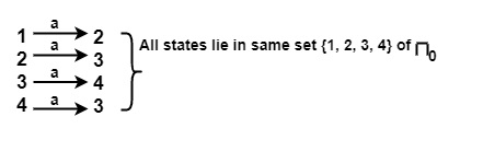 - 对于输入 a,在 π0 的 {1, 2, 3, 4} 上