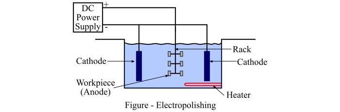 在电抛光中,金属工件浸入温度受控的电解液浴中,并作为阳极连接到直流电源的正极。