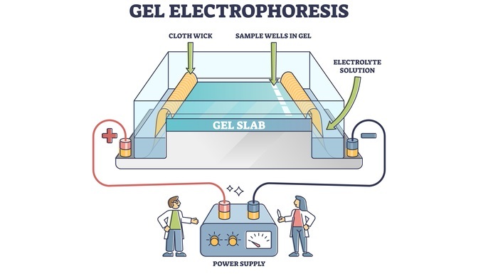 凝胶电泳是一种实验室技术,用于根据 DNA、RNA 和蛋白质分子的尺寸、电荷和其他物理特性对其进行分离和分析。它涉及将待分析的样品放置在多孔凝胶基质上,施加电场,然后使分子迁移穿过凝胶基质。