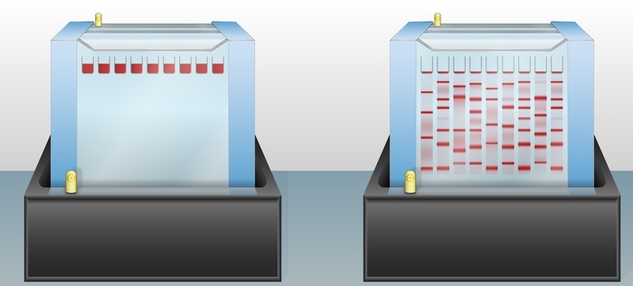 然后将样品加载到凝胶基质上,并使用电源在凝胶上施加电场。