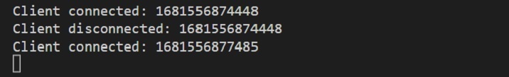 当客户端成功连接时,用户将在 Node 应用程序的终端中看到以下输出。