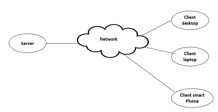 基本上,在互联网上,用户可以使用此技术,并且网络用于连接服务器和客户端。因此,客户端和服务器相互连接以进行客户端-服务器计算。
