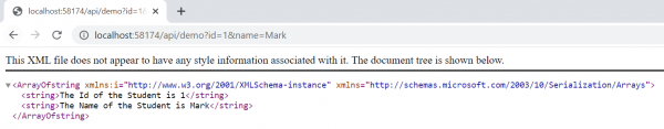 }对于上面的示例,让我们在 URI 中传递 id 和 name 的值,以填充到 Get 方法中相应的变量。
