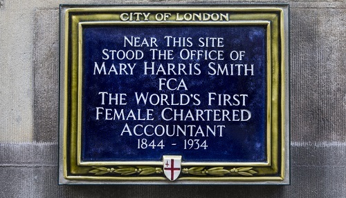 说明:伦敦市的一块牌匾,标志着玛丽·哈里斯·史密斯曾经的办公室所在地。玛丽·哈里斯·史密斯是第一位女性注册会计师。