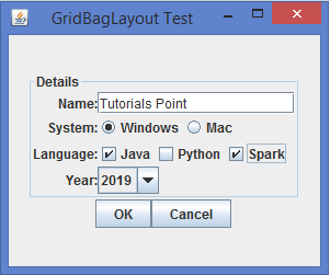 我们可以通过设置一个或多个公共实例变量来自定义GridBagConstraints对象。这些变量指定组件的位置、大小、增长因子、锚点、内边距、填充和间距。