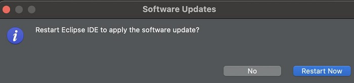 步骤 4 − 安装完成后,点击立即重启按钮以重新启动 Eclipse。